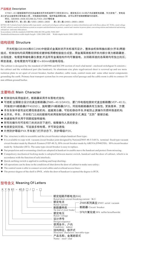 KYN61-40.5铠装移开式交流金属封闭开关柜